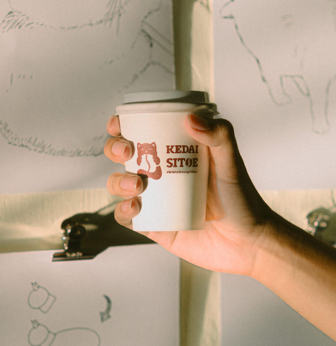 The logo shows a cat embracing coffee beans, a subtle but clear way to communicate that coffee is the heart of the business. Through deliberate branding choices, Kedai Sitoe doesn’t just look “cute”, it stands out in the market as a small café with character, meaning, and a story worth remembering.